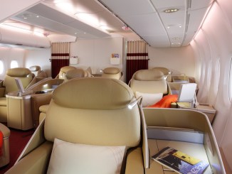 The success of Emirates’ Business Class product is very much based on the comfort and space of its Airbus A380 fleet, and that’s why the mega plane is rolled out on major international routes of the Dubai based carrier. With a staggered 1–2–1 configuration in Business Class, each passenger is assured of direct aisle access and a significant amount of privacy. The window Business Class seats are perfect for solo travelers, while the dual and more intimate seats in the center of the cabin are perfect for partners traveling together. Mammoth amenity kits, a huge inflight entertainment selection, and a roomy and well-appointed bar on the upper deck makes flying Emirates’ A380 quite an event, and in addition, the ground service matches the flying experience (e.g. chauffeur service, a gigantic Dubai lounge). Unfortunately, the Business Class cabins in most of Emirates’ Boeing 777s are laid out in a 2-3-2 configuration (with no direct aisle access for all passengers), which is significantly inferior to the one offered on the airline’s Airbus A380 fleet.