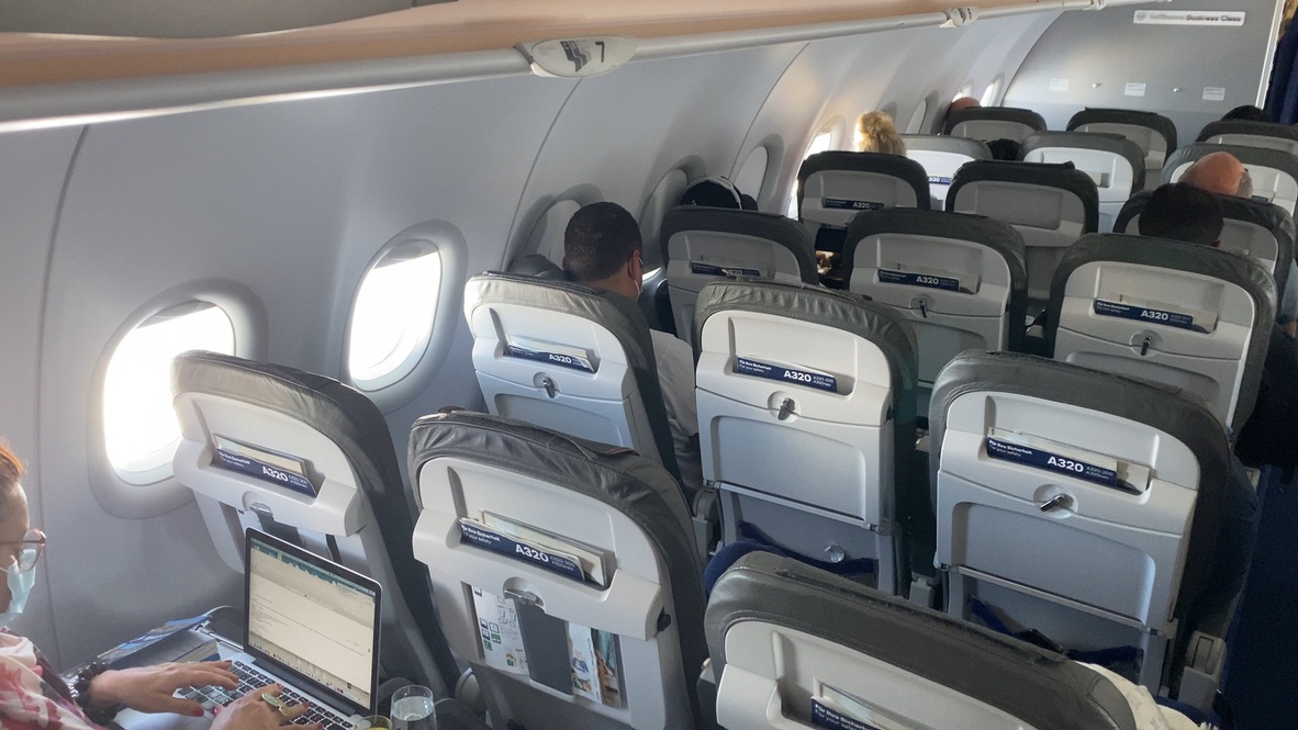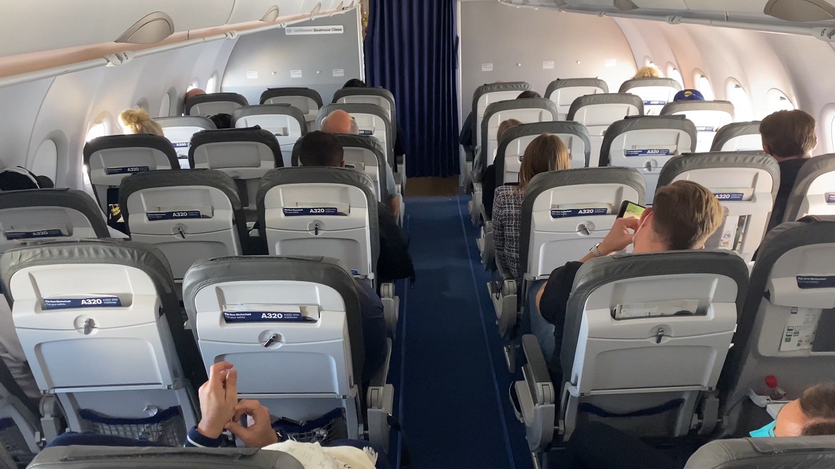 The flight was operated by an Airbus A320neo, the newest member of the A320 aircraft family. The addition of “neo” stands for “New Engine Option”. What makes the A320neo stand out are the new engines and improved aerodynamics. The aircraft is 15 percent more fuel efficient than today’s comparable models. It also shows impressive figures in terms of noise reduction: the 85 decibel maximum noise-level contour of a starting A320neo is around 50 per cent lower than that of the current A320. From a passenger’s perspective, there’s not much difference though between flying in an A320 versus A320neo (except for the lower noise levels).