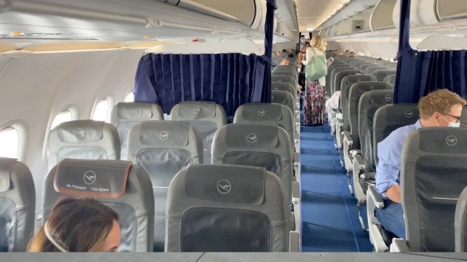 Lufthansa’s Airbus A320neo features 180 seats arranged in a 3-3 layout in a single cabin. All seats are 17.8 inches (45 cm) wide and have a pitch of 30 inches (76 cm), with the exception of the seats in the exit row which feature some extra legroom. The first 7 rows of the aircraft are reserved for Business Class passengers (and separated from Economy Class by a curtain); the Business Class bacin is comprised of Economy Class seats with blocked middle seats (similar to what is offered by most other European airlines on shorthaul flights).