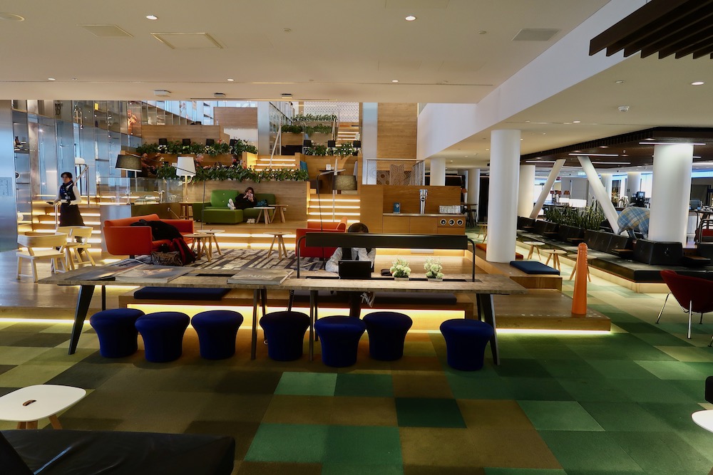 The lounge boasts a surface area of 6,800 m2 (37,194 f2) and offers around 1,500 seats (more than twice the number of seats before its last renovation in 2018). Large floor-to-ceiling windows throughout the lounge offer great views of the runways, piers, and the KLM fleet in the background. The massive space is divided into four different zones – or “Dutch landscapes” – for working, relaxation, food & drinks, and entertainment.