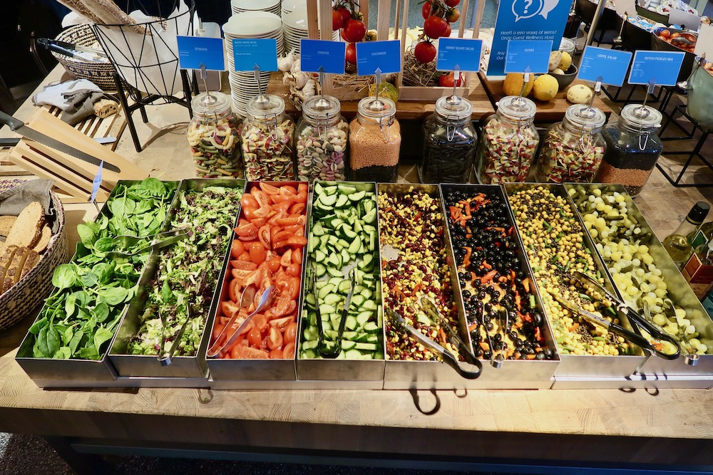 • In the City landscape, guests can enjoy “live” cooking, a Heineken Bar, specially designed by Heineken, and a coffee bar with a barista. The food and beverage concept – characterised by high-quality, and fresh seasonal products – comes from KLM’s partner Vermaat.  During my visit in the evening hours, cold dishes included a variety of breads, cheese, cold meats, fresh fruits and salads, while hot dishes – offered in an open kitchen – included vegetable soup, grilled chicken, rice, and pasta.