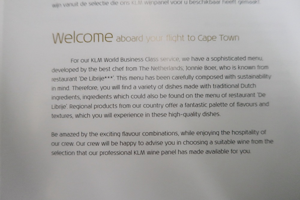 Today: KLM Boeing 787 Dreamliner Business Class from Amsterdam to Cape Town