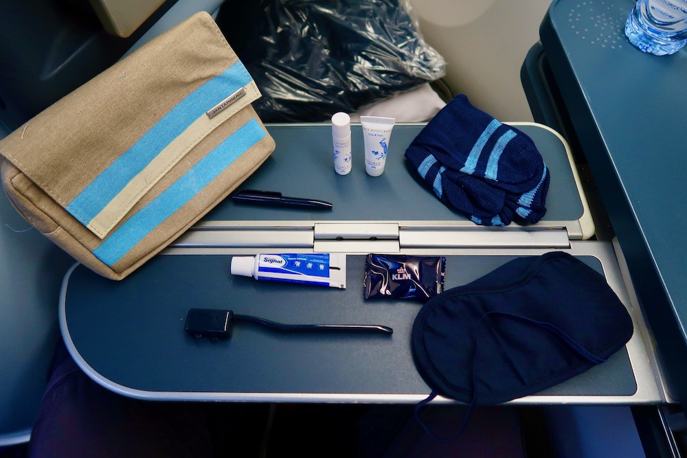 Business Class passengers receive the following amenities on one of KLM’s longhaul flights :