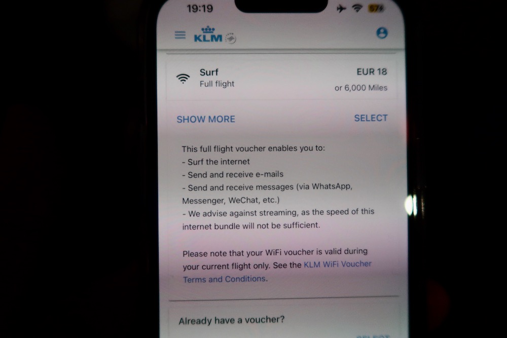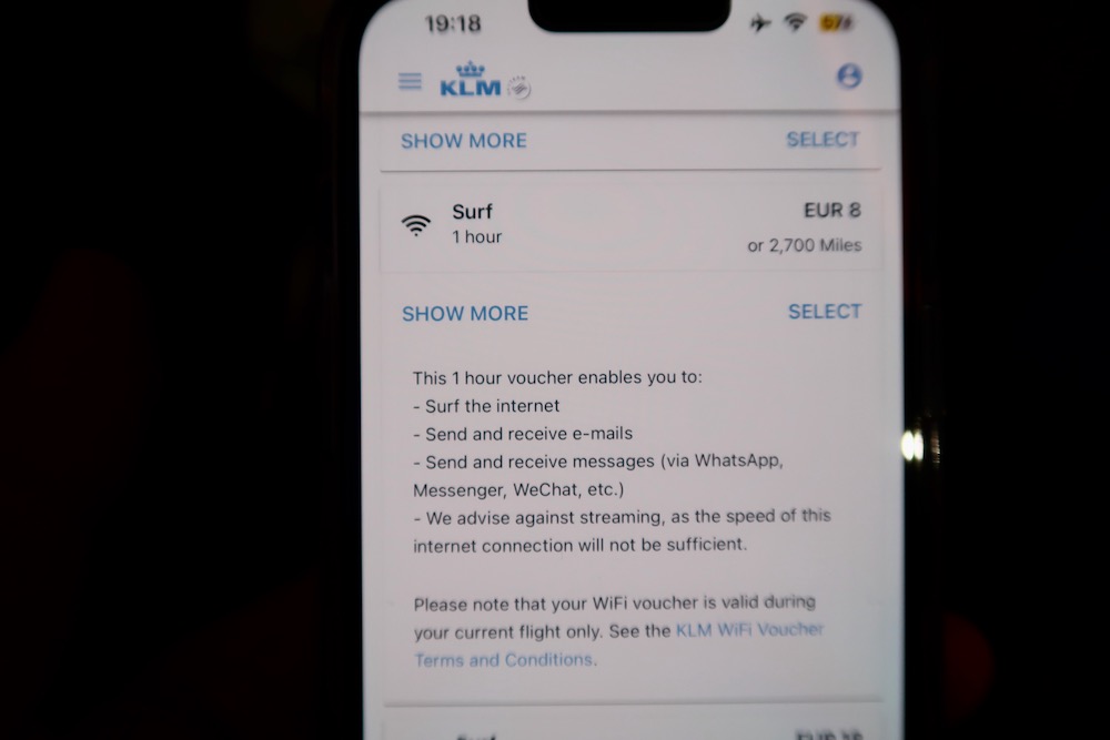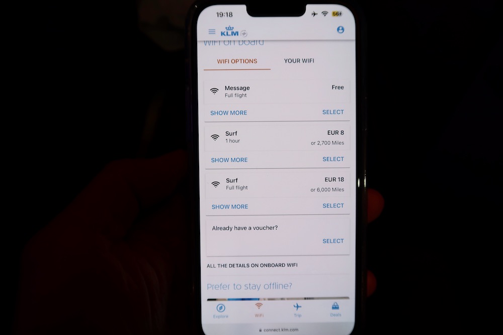 Two other internet packages are available for purchase on KLM’s longhaul flights: