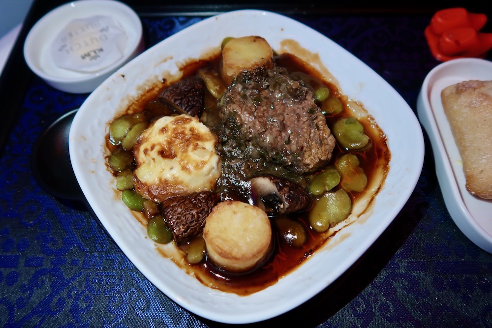 The dishes were beautifully presented, in part because of KLM’s stylish and unique tableware. The porcelain, glassware, cutlery, linen and tray have all been designed by Marcel Wanders, a famous Dutch designer. Even the salt and pepper shakers come in the form of clogs, one of Holland’s symbols.