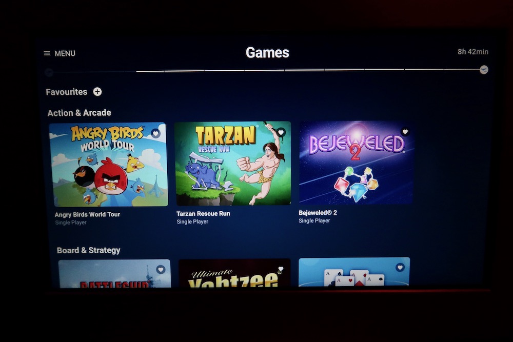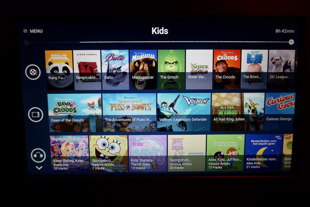 KLM offers more than 1000 hours of interactive entertainment in various languages (e.g. Arabic, Chinese, Dutch, English, French, German, Japanese, Korean, Portuguese or Spanish). There are more than 200 films to choose from, including recent releases, classics and world cinema, in addition to hundreds of TV shows, CDs, language courses, games, audiobooks, and a dedicated kids channels.
